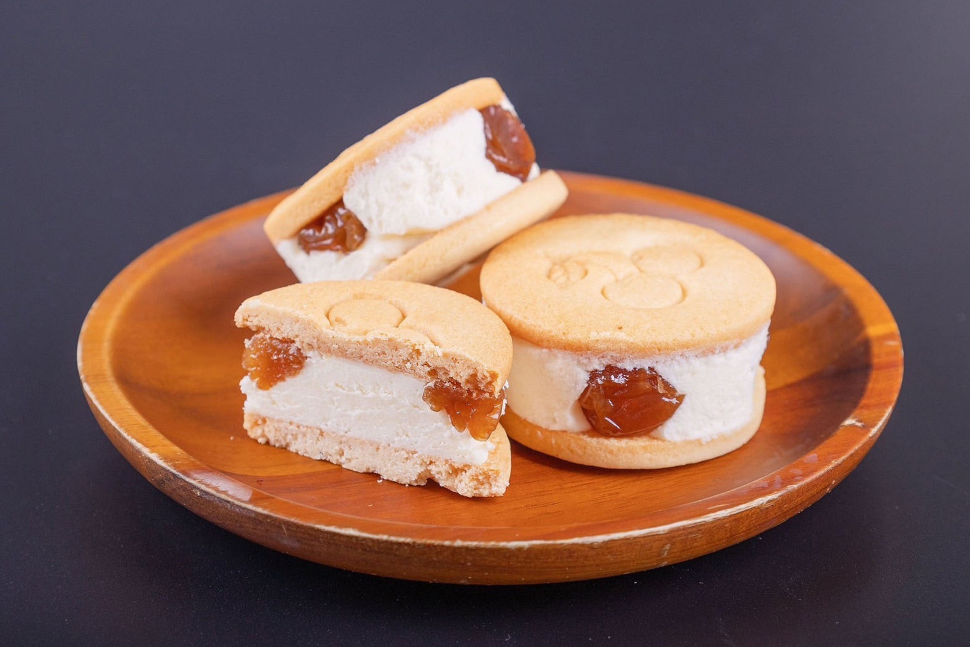 たっぷりのクリームと甘酸っぱいドライさくらんぼのクッキーサンド。