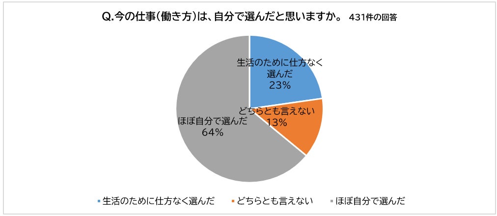【 働き方を「仕方なく選んだ」「どちらとも言えない」23.0% 】