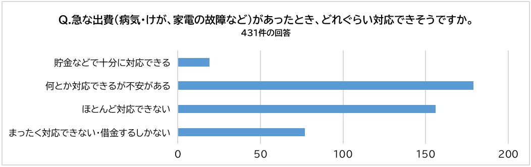 Q急な出費(病気・けが、家電の故障など)があったとき、どれくらい対応できそうですか。(自由回答)