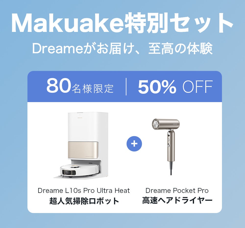 最先端ロボット掃除機で世界に高く評価されるDreameは、通販199,800円の超高人気製品ロボット掃除機、「Dreame L10s Pro Ultra Heat」の特別セットを80名限定でご用意しております。Dreame愛用者の皆様、そしてこれからDreame製品をお試しいただく方にぴったりのチャンスです。