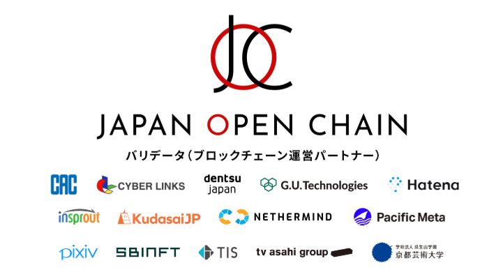 バリデータ(ブロックチェーン運営パートナー)は現在、株式会社電通、G.U.テクノロジーズ株式会社、株式会社 insprout、株式会社 Kudasai、ピクシブ株式会社、TIS 株式会社、テレビ朝日グループの extra mile 株式会社、京都芸術大学、株式会社はてな、株式会社シーエーシー、株式会社サイバーリンクス、SBINFT 株式会社、Nethermind、株式会社 Pacific Meta の 14 社が参画しており、分散的にブロックチェーンが管理され最終的には 21 社となる予定です。