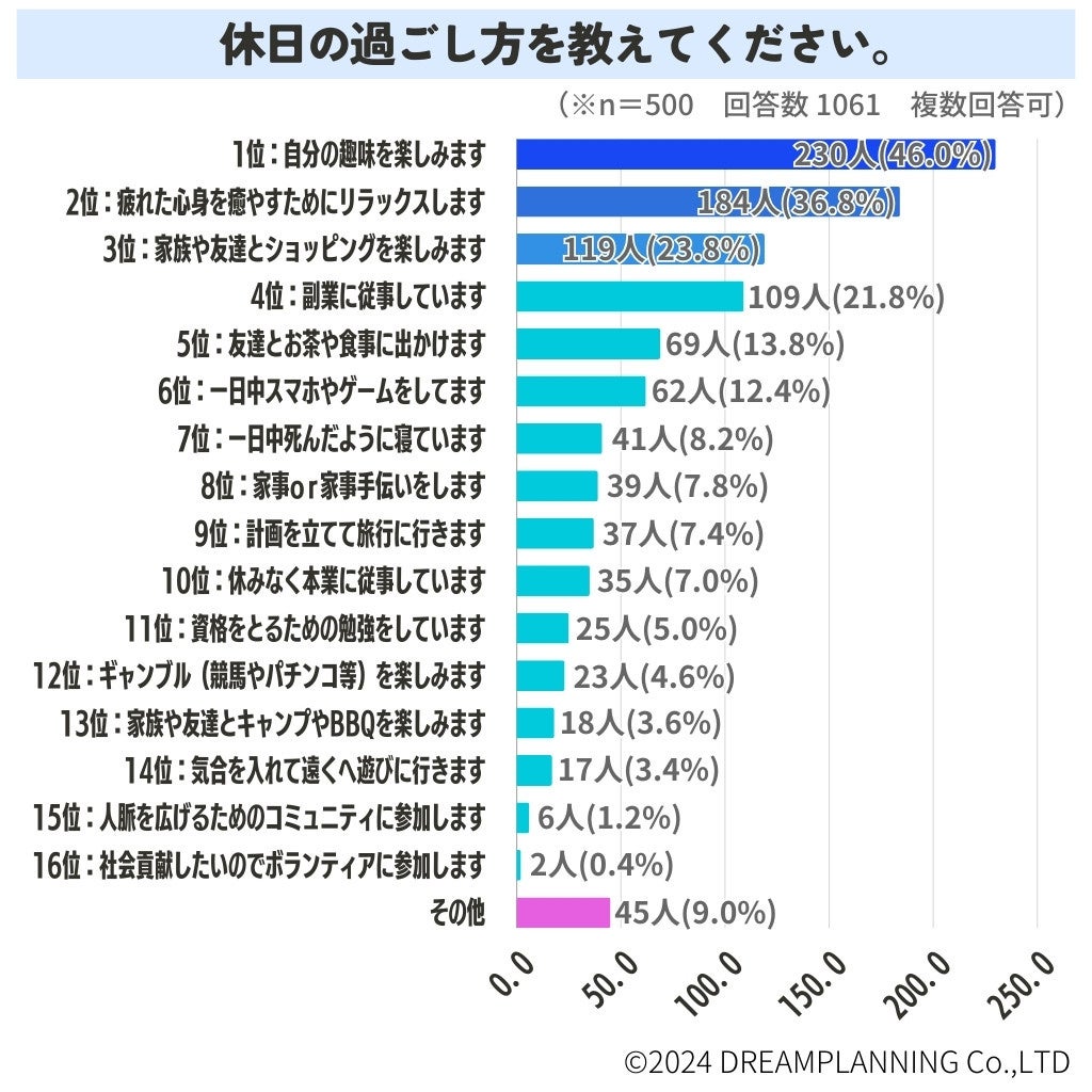 ★ 1位:自分の趣味を楽しむ 230名(46.0%) ★