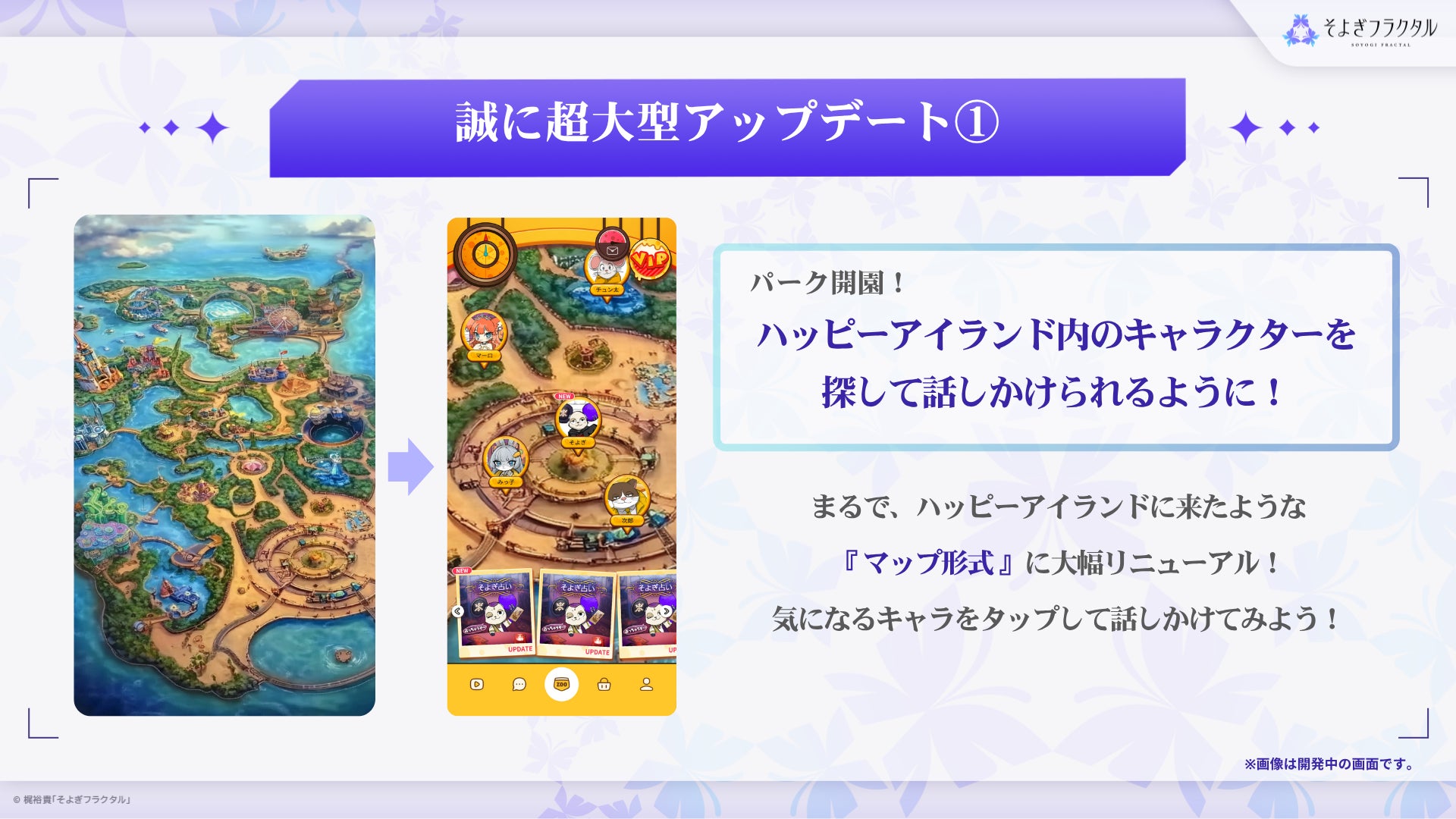 『HAPPY RAT』のホーム画面が、キャラクターたちが暮らす“ハッピーアイランド”のマップ形式に大幅リニューアル!まるで自分が島に降り立ったような気分で、アプリの世界観を直感的に楽しめます。気になるキャラクターを見つけて、会話を楽しみましょう!