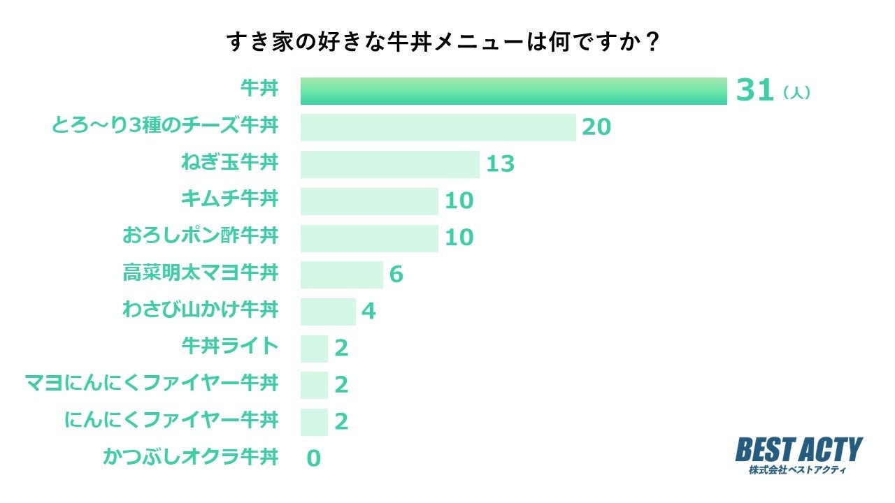 アンケートの結果、「牛丼」と答える人が最も多い結果となりました。