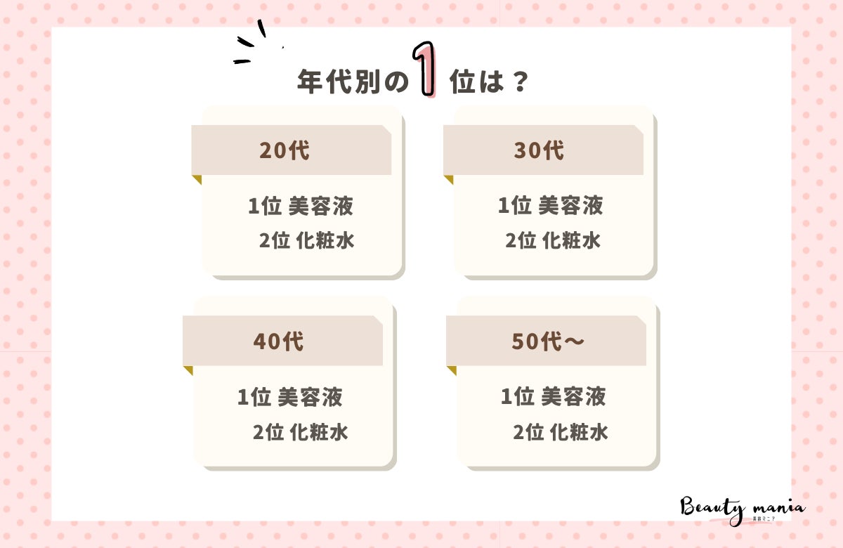 ・化粧水を保湿をして、美容液でさらにシワに対するアプローチをすることで少しでも改善してほしいと思ったのと、化粧水よりも美容液の方がシワに対する商品が多い為(30代)