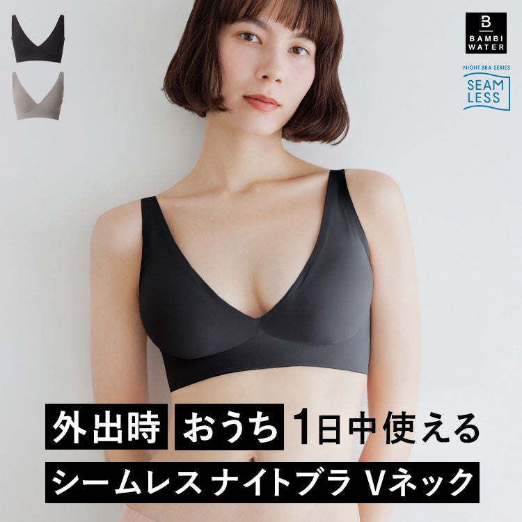 人気シリーズ「BAMBI WATER スタイルナイトブラ シームレス」に「Vネック」と「バンドゥ」の2タイプが新登場!ファッションやシーンに合わせて、外出時もおうちでも1日中育乳設計