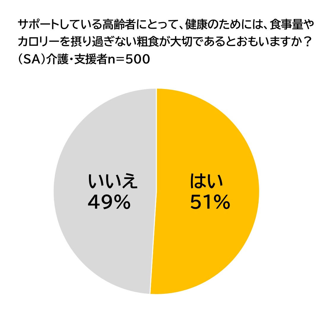 加齢に伴う食欲の低下などにより食事量が減少すると、身体の維持に必要な栄養素が不足し「低栄養状態」となります。低栄養は筋力の低下や身体機能の低下につながり、衰えを加速させ、フレイルのリスクとなるとされています。中高年世代のメタボリックシンドローム対策の食事・栄養管理では、エネルギー(カロリー)の摂りすぎに注意することが大切ですが、高齢者の加齢に伴う低栄養やフレイルのリスクに備えるための食事・栄養管理では、カロリーやたんぱく質をしっかり摂取することが大切です。しかしながら、ネスレ ヘルスサイエンスが実施した調査によると、多くの高齢者や介護支援者の方々が「高齢者にとって、健康のためには食事量やカロリーを摂りすぎない粗食が大切」と認識していることが明らかになりました。
