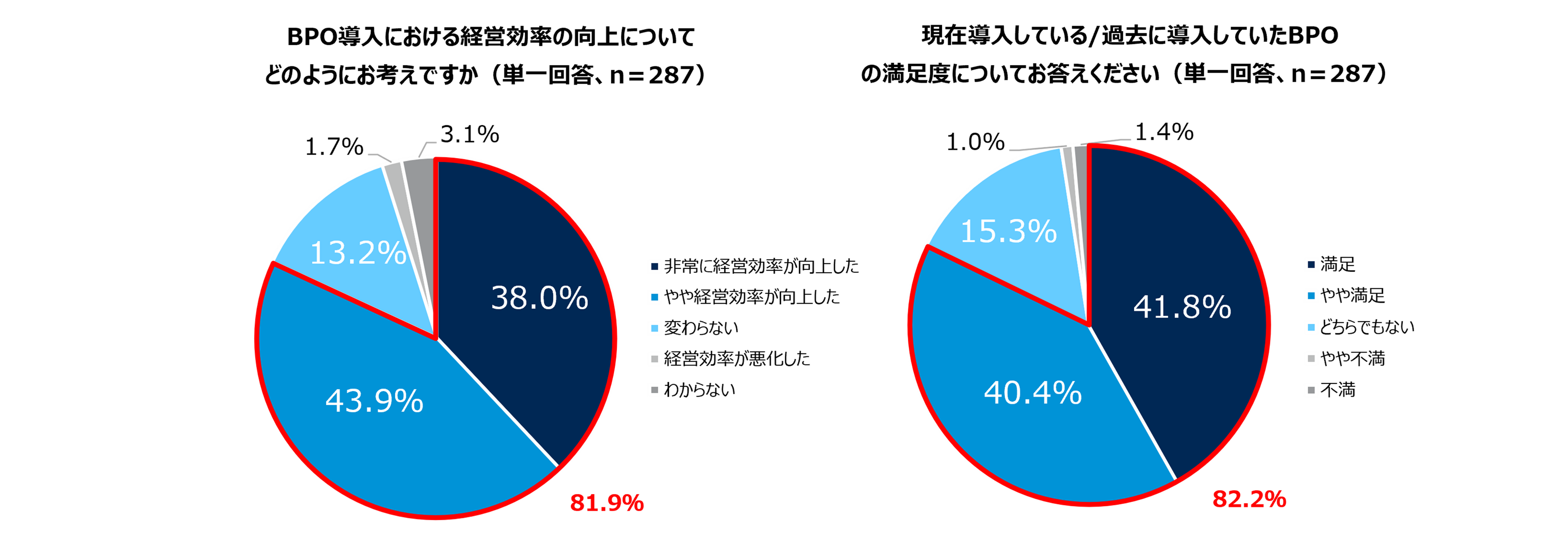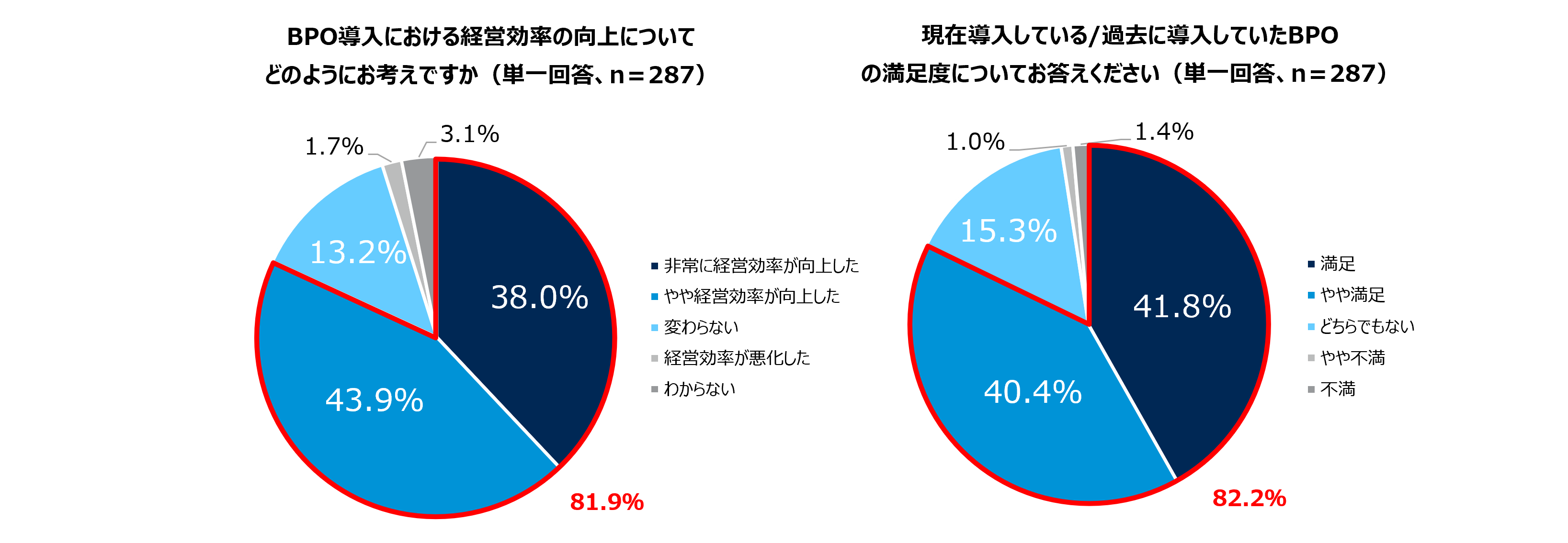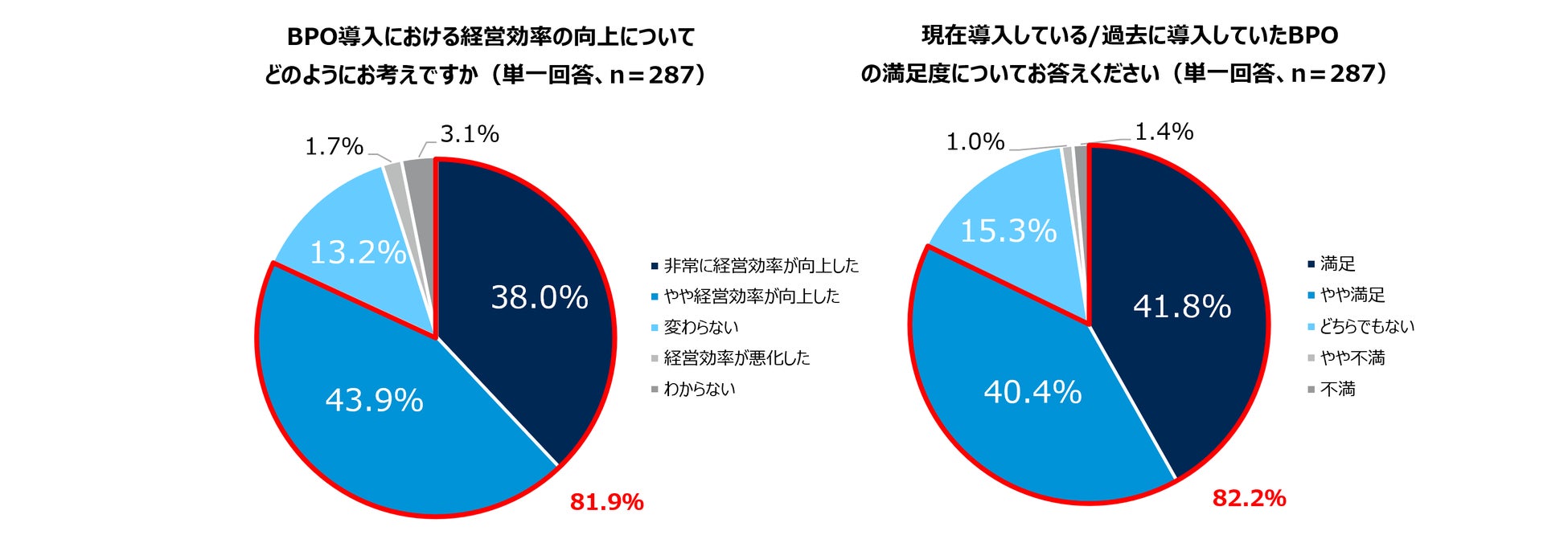 ■BPOの導入により「経営効率が向上した」「満足している」という回答が共に8割以上。