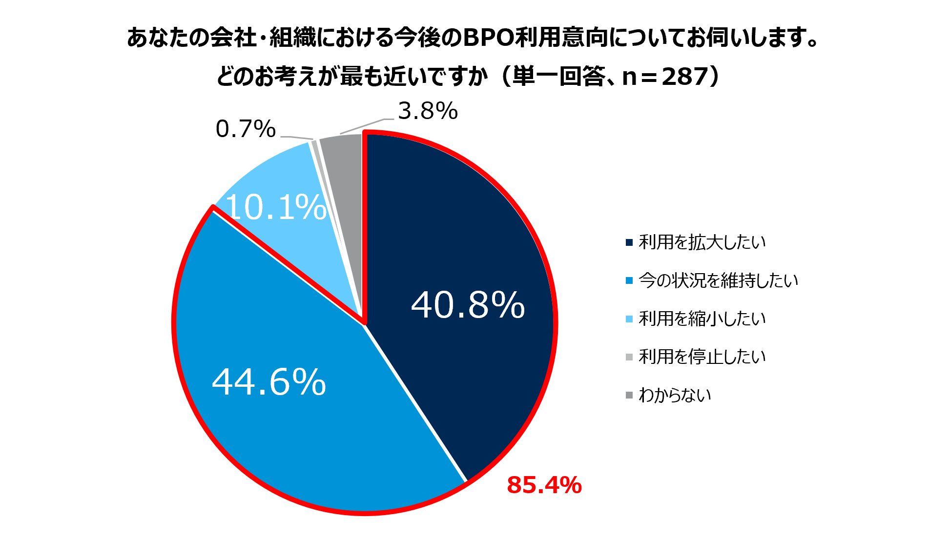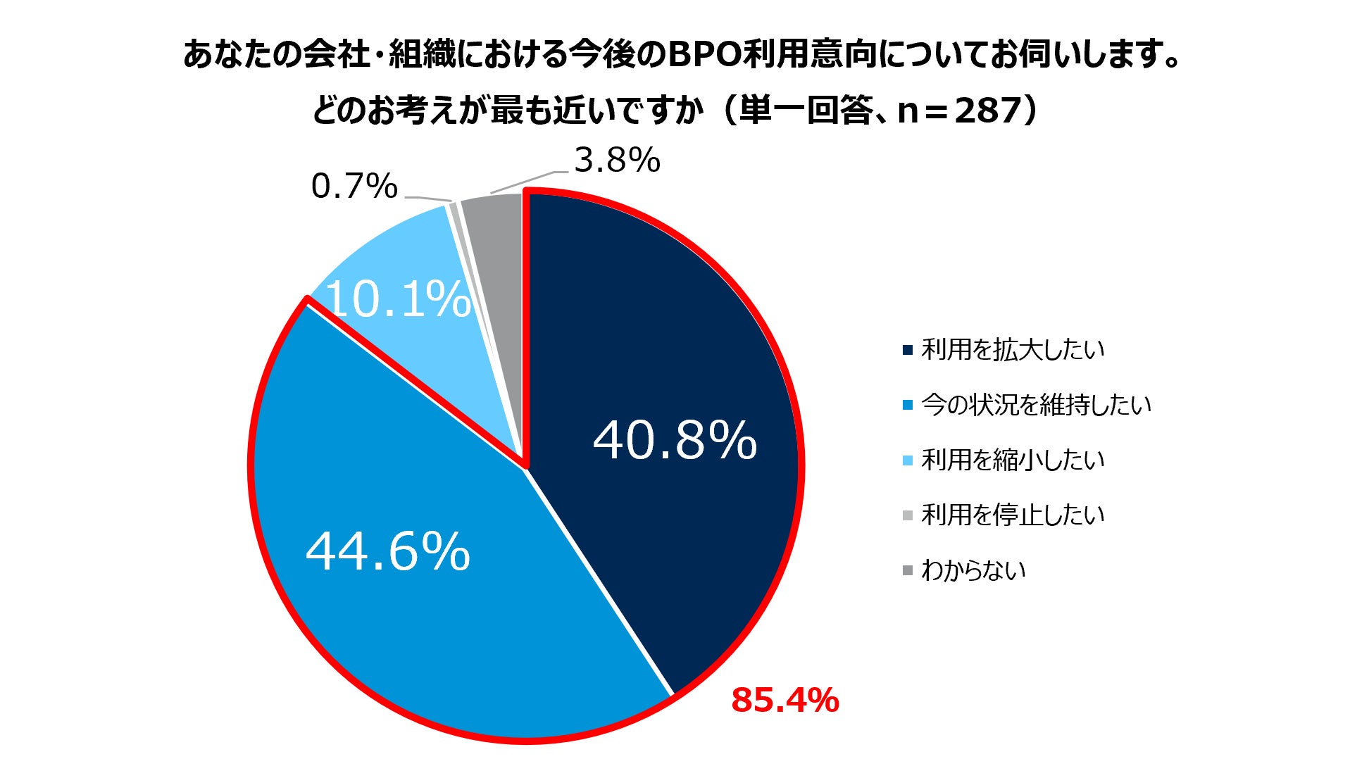 また、8割以上が今後もBPO利用継続・拡大の意向を持っている。