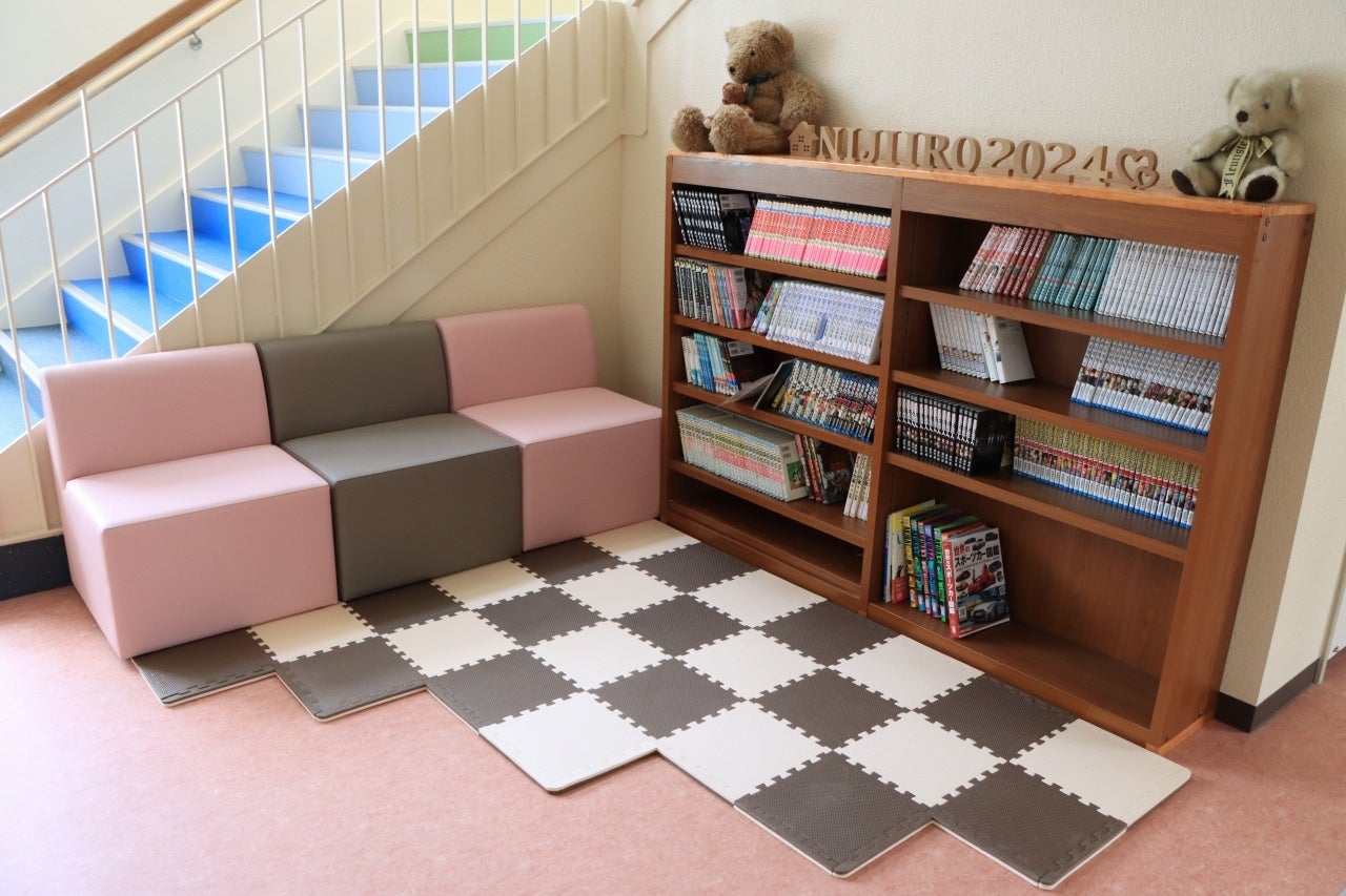 また、保健室・談話室などとして使うことができる「オペレーションルーム」や、教育相談やオンライン学習ができる「カウンセリングルーム」もあり、設置されたゲーム機で一人でも仲間とでも楽しく過ごすことができます。「図書スペース」には寄贈された漫画も沢山あり、自由に読むことができます。