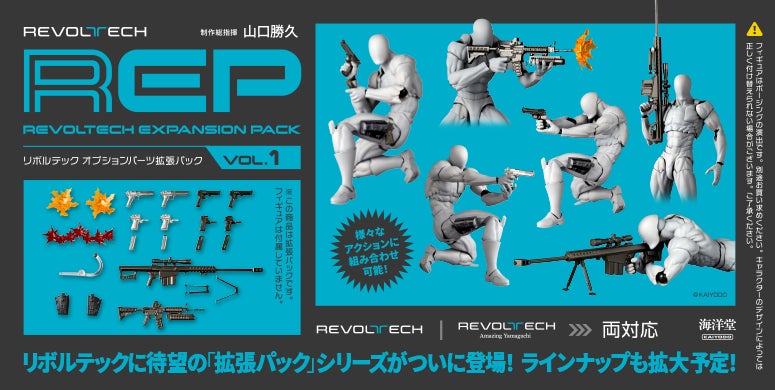 海洋堂の可動フィギュアブランド、リボルテックシリーズのキャラクター達に持たせられる銃器の拡張パックが再登場。2026年4月17日(金) より予約受付が開始。発売は2026年8月を予定 。
