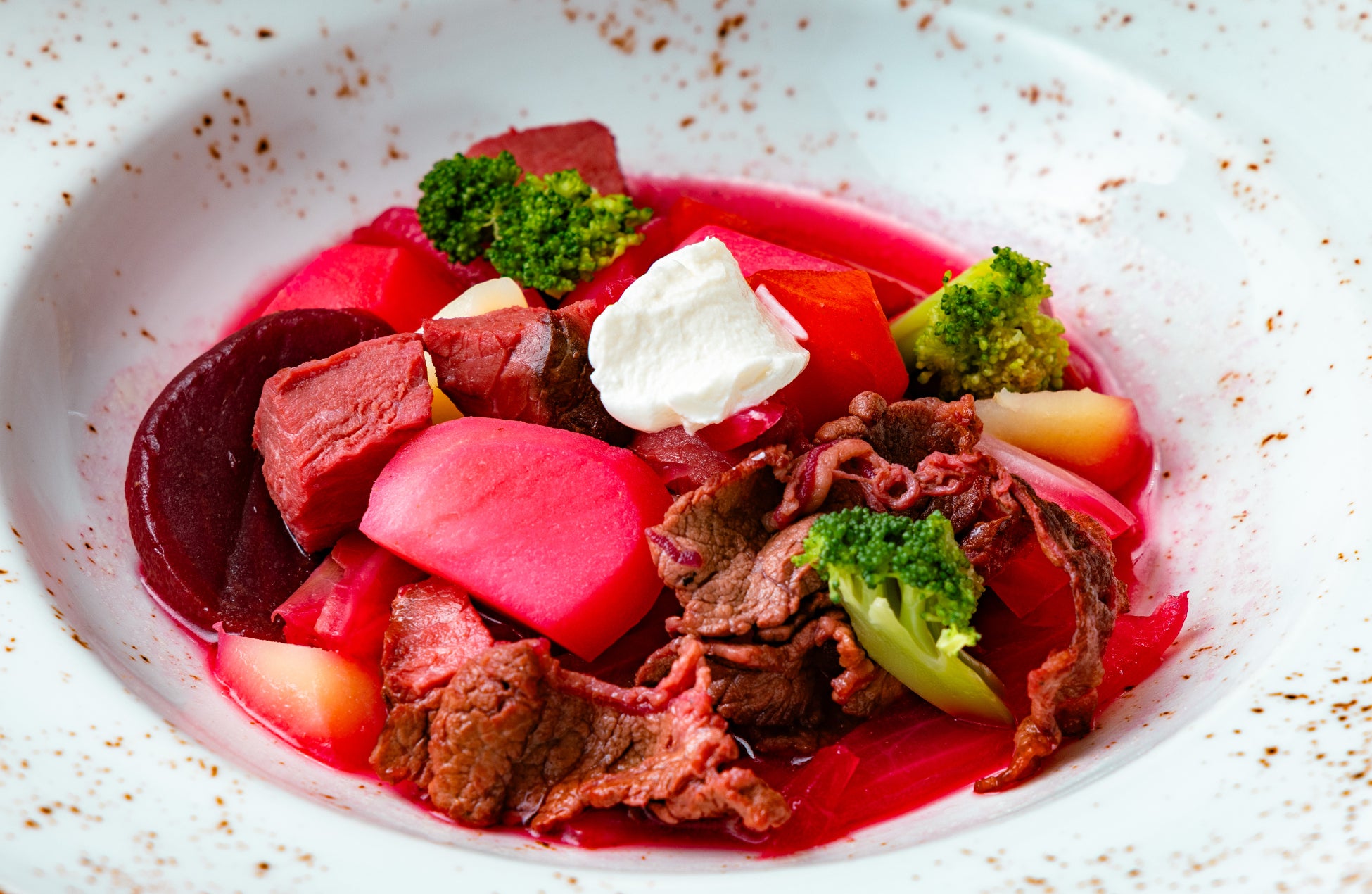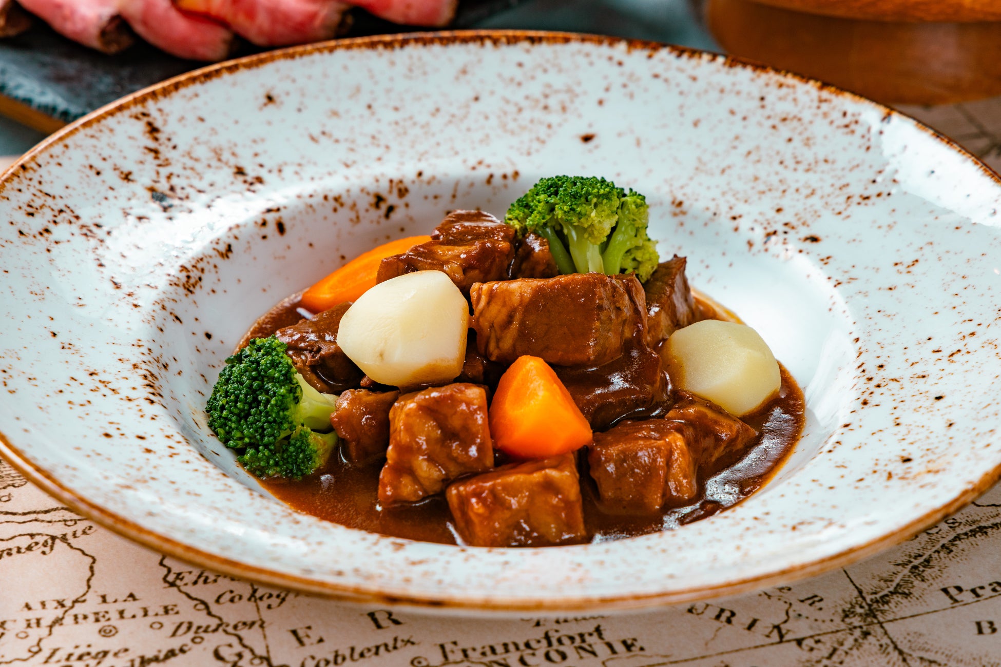 ヨーロッパやアジア、アメリカなど、15を超える各国の代表的な美食が一挙集結する今回のブッフェ。フランス料理の牛肉を赤ワインでじっくり煮込んだブルゴーニュ風煮込みや、ジューシーなスペアリブ、ロシアのボルシチといったメインディッシュに加え、ハワイのロミロミサーモン、タイのトムヤムスープでいただくベトナム麺料理、トムヤムフォーなどバラエティ豊かなメニューを取り揃えました。肉厚な自家製ローストビーフはシェフが目の前でスライスしてお好みのソースを添えるライブキッチンスタイルでご提供。紀元前からヨーロッパ諸国で親しまれてきた西洋わさびで作ったホースラディッシュソースやアジアで広く使われているピリッと辛いチリソースと一緒にお楽しみください。