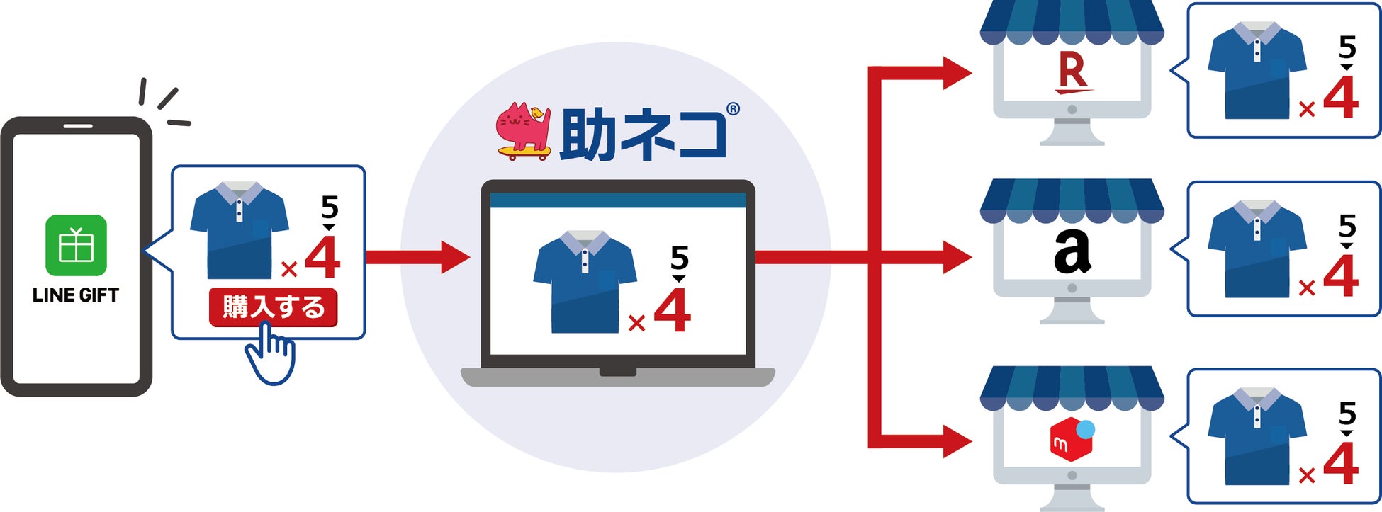 株式会社アクアリーフ(本社:神奈川県平塚市、代表取締役 長谷川 智史)が提供するネットショップ向け業務管理システム「助ネコ®EC管理システム(以下、助ネコ)」は、同シリーズの「助ネコ®在庫管理」において、LINEヤフー株式会社が運営する「LINEギフト」とのAPIによる在庫連動に対応しました。