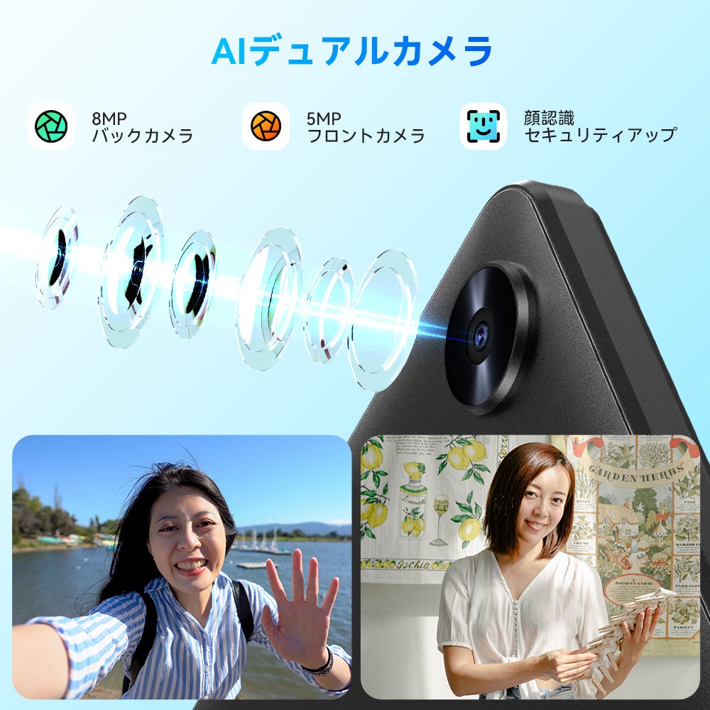 前面には500万画素のカメラが搭載されており、ビデオ通話やオンライン会議時に常に輝きを放ちます。背面には800万画素のAFカメラがあり、常に満足のいくクリアさを提供します。高速オートフォーカス機能を使用して、すべての素晴らしい瞬間を記録します。顔認識機能をサポートし、タブレットPCの安全性を大幅に向上させ、安全で便利にデバイスをロック解除することができます。