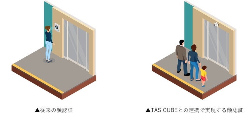 従来、「FreeiD」をマンションやオフィスなどで提供する際には、目線の高さに合わせた顔認証機器の設置を推奨しておりました。「TAS CUBE」との連携でセキュリティカメラが利用可能対象になることで、目線の高さにカメラを設置する必要がなくなり、設置の自由度と意匠性が向上します。