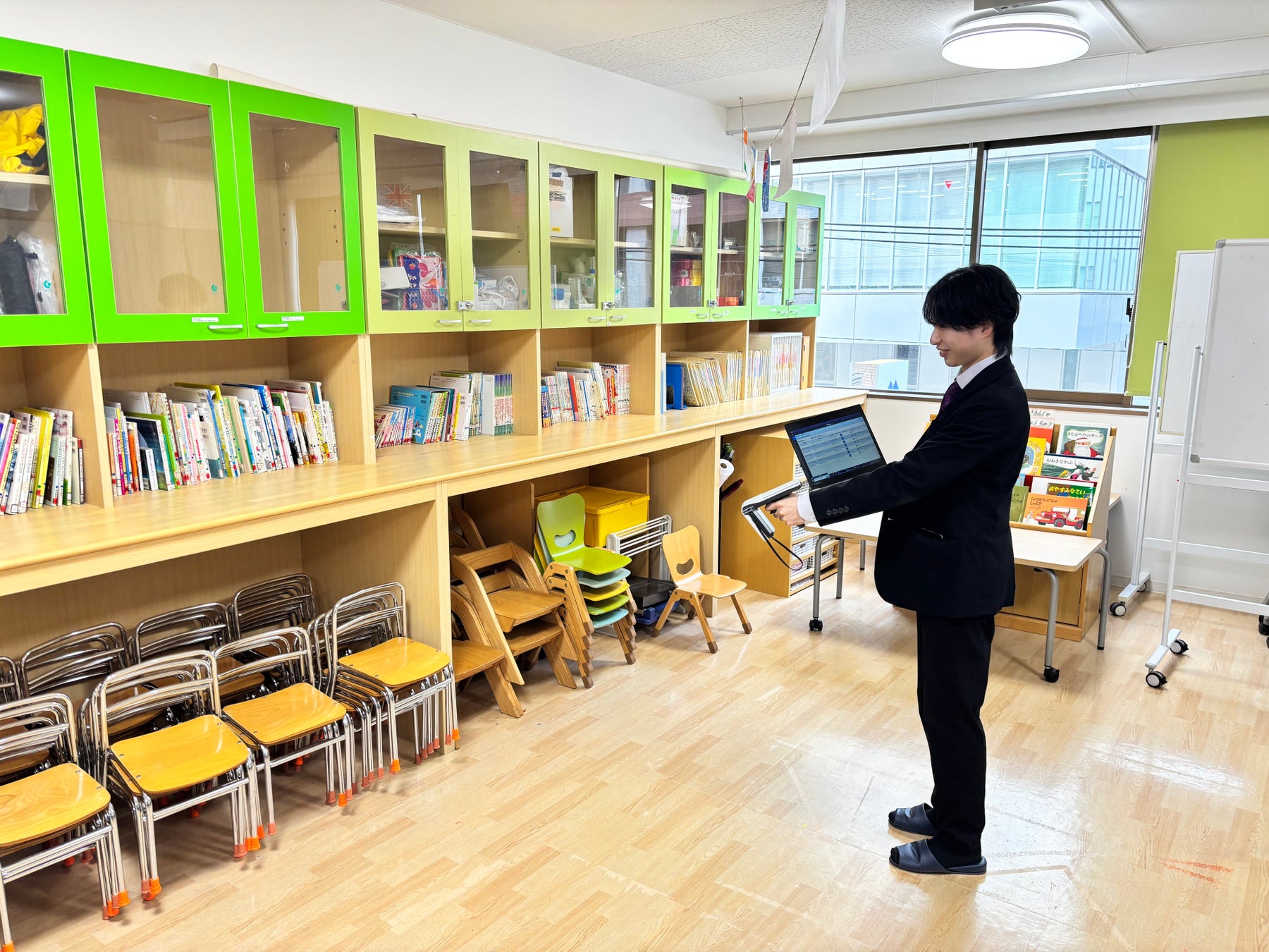 「タグ衛門」導入後は、2名体制で各教室を廻り、1日で棚卸が完了します。また見つからない什器については、検索機能を使いスムーズに発見することができます。棚卸の工数は1/5にまで削減されました。