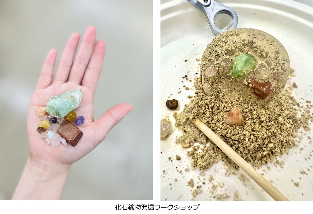 ビクセンブースでは、星空雑貨や双眼鏡を特別価格で販売するほか、小さなお子様から参加いただける「化石鉱物発掘ワークショップ」を行います。(12:00~17:00/有料1,000円)