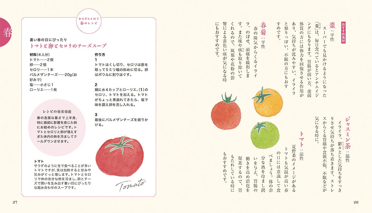 本書では、季節を「春」「梅雨」「夏」「秋」「冬」の五つに分け、それぞれの季節の悩みに合わせた薬膳による対処法を紹介します。
