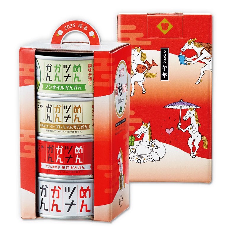 シリーズ累計販売数900万缶を突破した大人気の「めんツナかんかん」4種を集めた特別セット。常温で持ち運べて長期保存も可能なギフトにも最適なひと品です。
