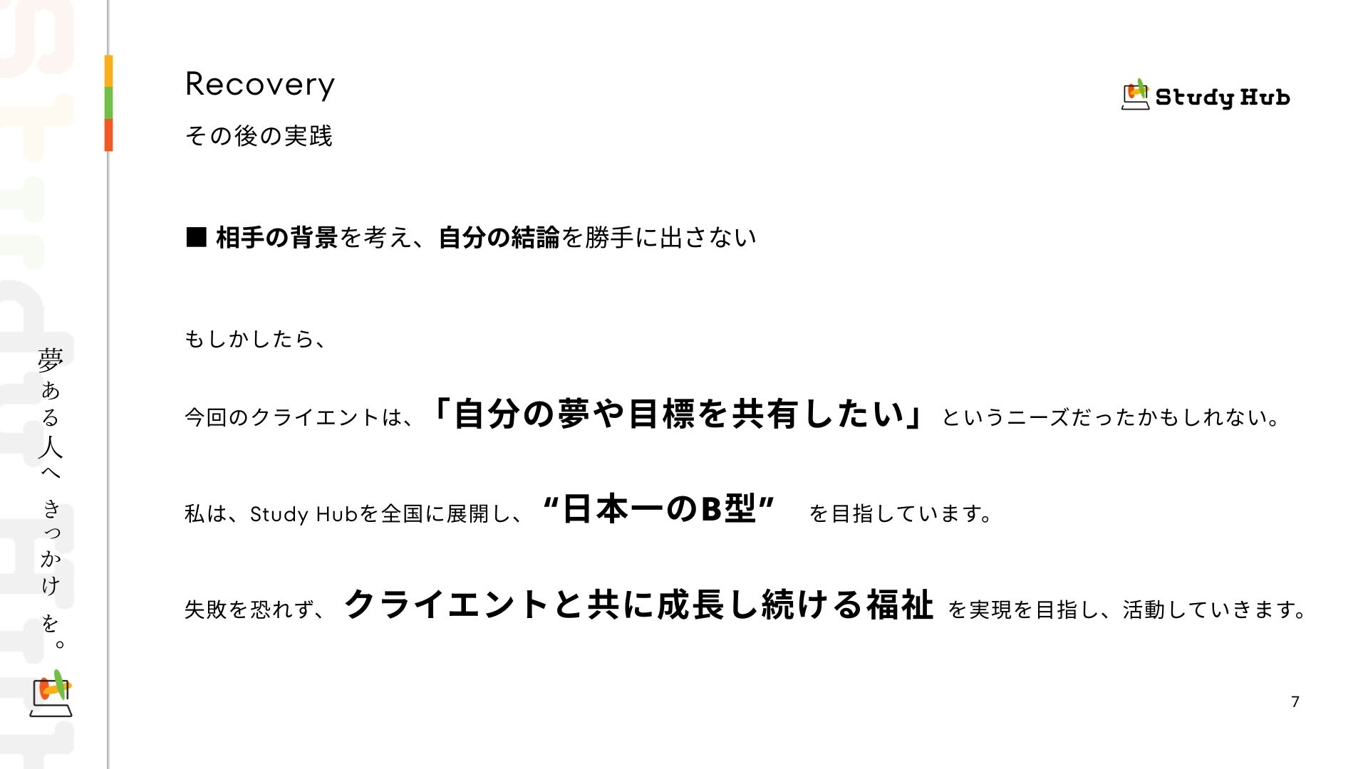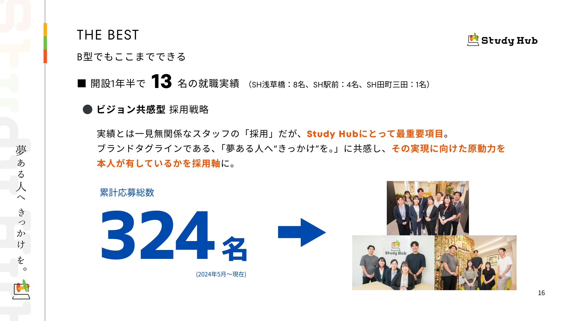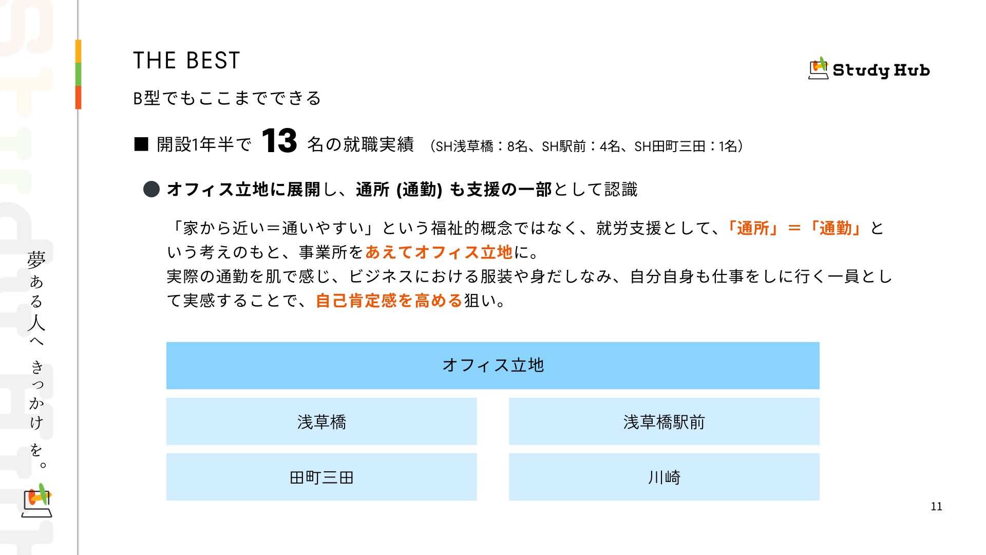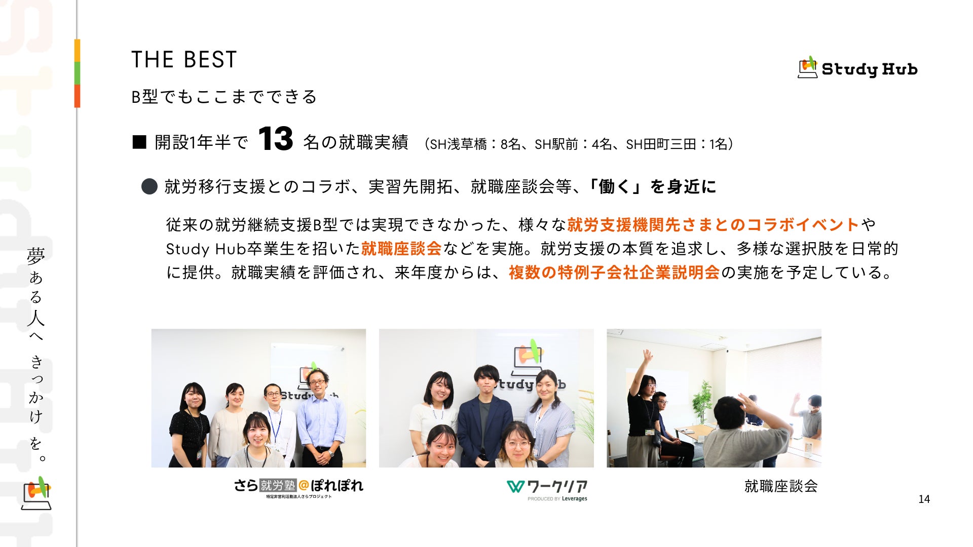 Study Hubは今後も、現場での実践知を積極的に発信し、就労支援業界全体の発展に寄与するとともに、全国への拠点拡大を通じて、より多くの方に質の高い支援を届けてまいります。