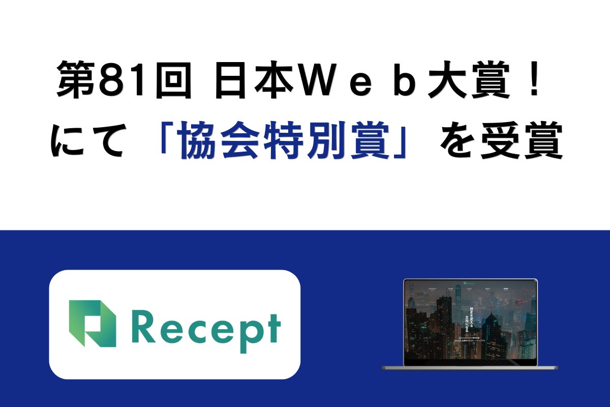 株式会社Recept(代表取締役社長 中瀬 将健、本社:東京都豊島区、以下「Recept」)は、自社コーポレートサイトが「第81回 日本Web大賞!」にて「協会特別賞」を受賞したことをお知らせいたします。