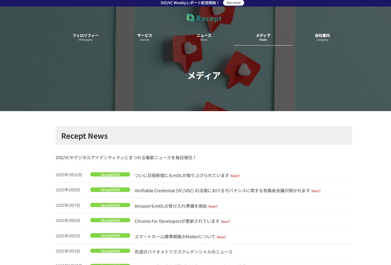 Receptは、デジタルアイデンティティ管理の先端技術「DID/VC」を専門に取り扱うスタートアップ企業です。