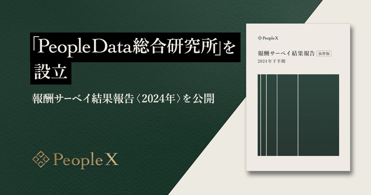 エンプロイーサクセス事業を推進する株式会社PeopleX(本社:東京都渋谷区、 代表取締役CEO:橘 大地、以下:当社)は、当社が保有する独自データを活用し、企業の人事戦略を支援するための調査・研究を行う新たな組織「PeopleData総合研究所(以下、PeopleData総研)」を設立したことをお知らせいたします。その第一弾アウトプットとして、「報酬サーベイ結果報告<2024年>」を公開いたします。