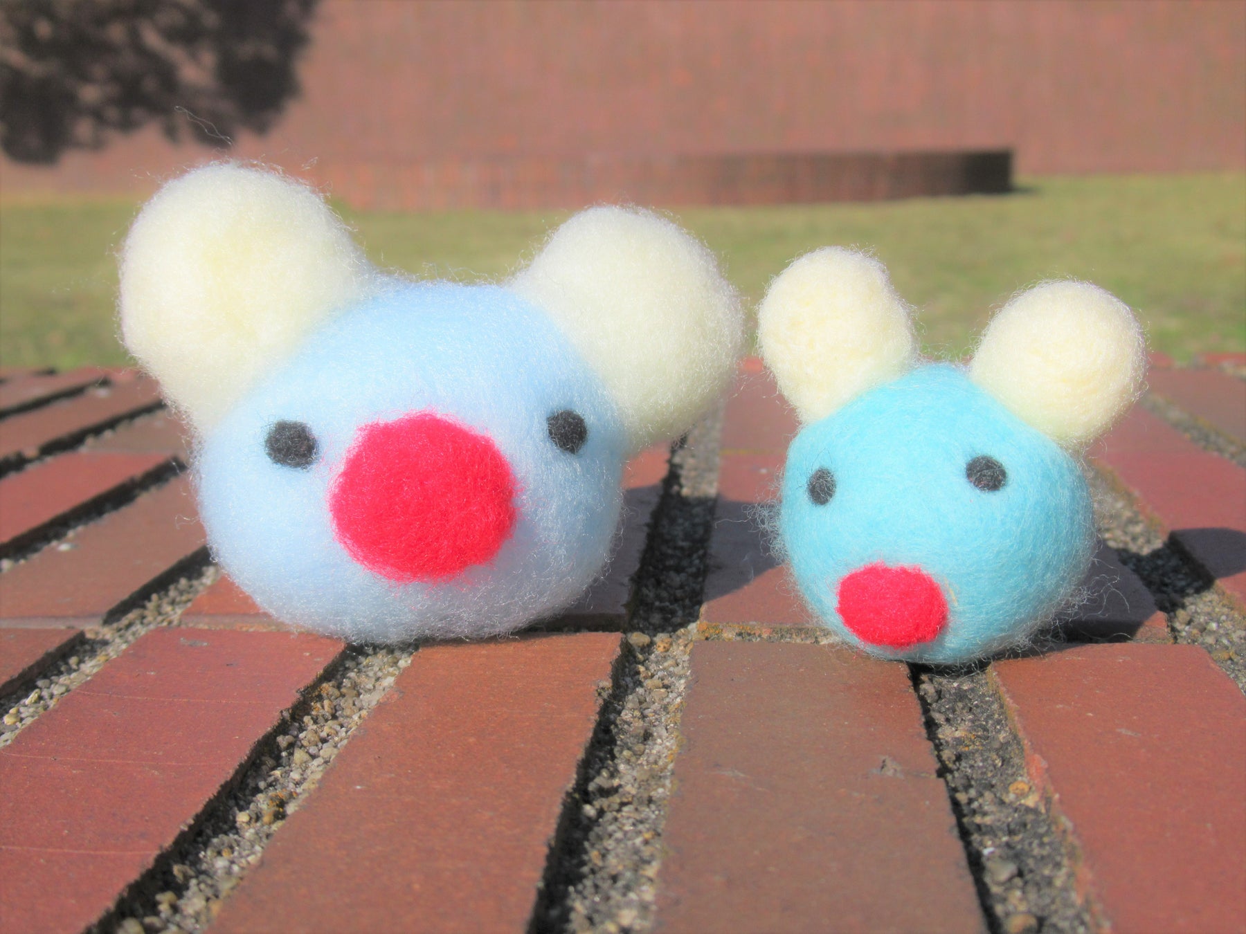 ニードルフェルト素材を使った小さなマスコット。中性洗剤を混ぜた水をかけてもみ、ふわふわの状態からまとめます。完成したらブローチやストラップにして身につけましょう。