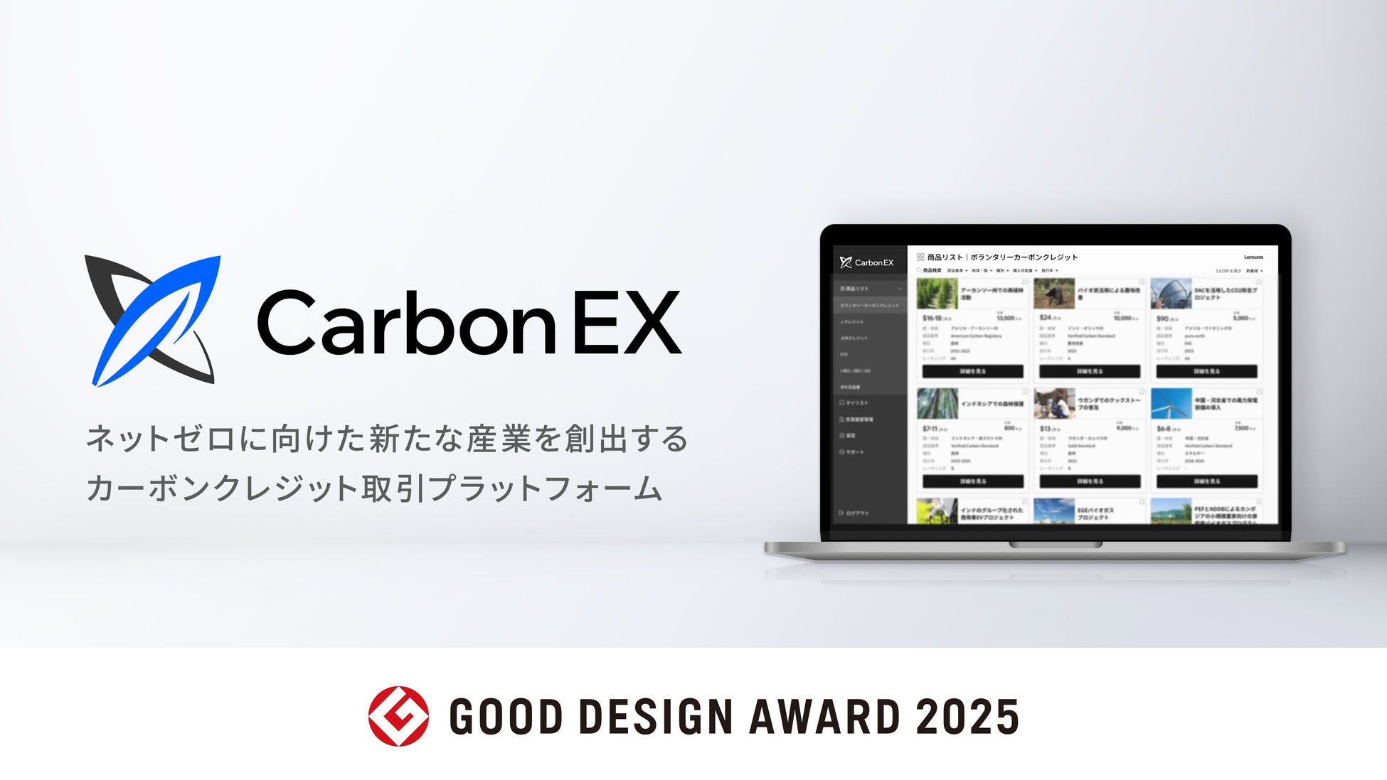 Carbon EX株式会社(本社:東京都港区、代表取締役: 西和田浩平、竹田 峻輔、以下「当社」)が運営するカーボンクレジット・排出権取引所「Carbon EX」は、公益財団法人日本デザイン振興会が主催する「2025年度グッドデザイン賞」を受賞しました。