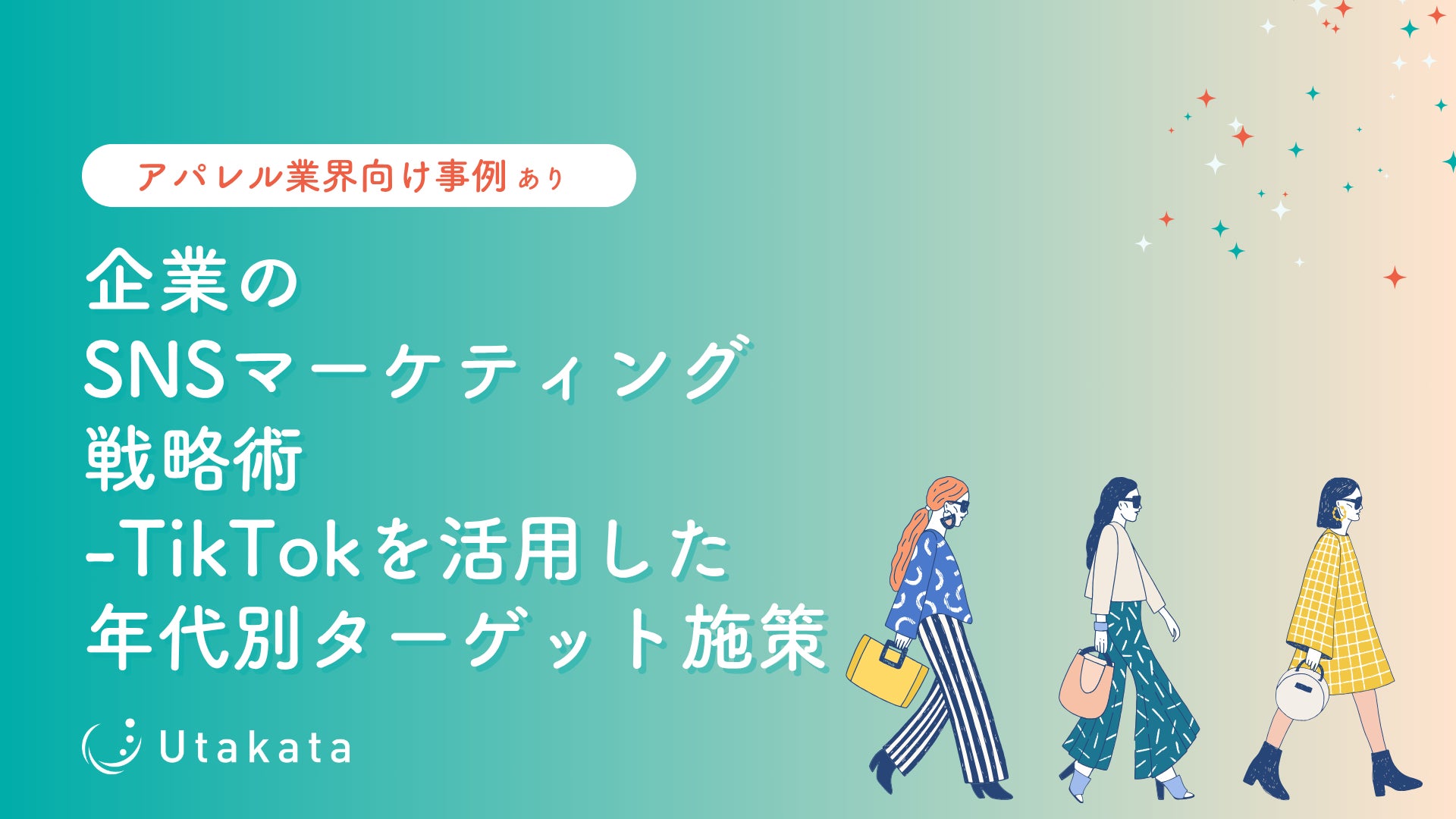 SNSアカウント運用、インフルエンサーマーケティングなどを支援するデジタルマーケティングエージェンシー、株式会社Utakata(読み:ウタカタ)(東京都千代田区、代表取締役 甲藤 碧)は「【アパレル業界向け】 企業のSNSマーケティング戦略術_TikTokを活用した年代別ターゲット」2025年5月版を無料公開いたしました。