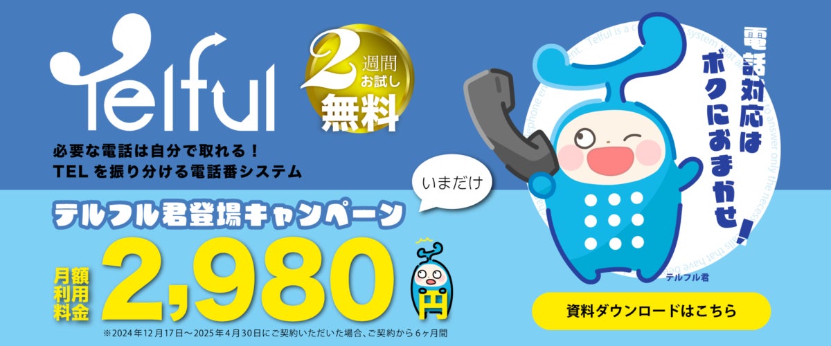 電話のDXを推進する株式会社プロディライト(大阪市中央区:代表取締役社長 小南 秀光、証券コード:5580、以下プロディライト)は2025年4月21日、わずらわしい電話をシャットアウトし、顧客応対と業務の効率化を両立させるサービス「Telful (テルフル) powered by INNOVERA」にて、アップデートを行なったことをお知らせいたします。