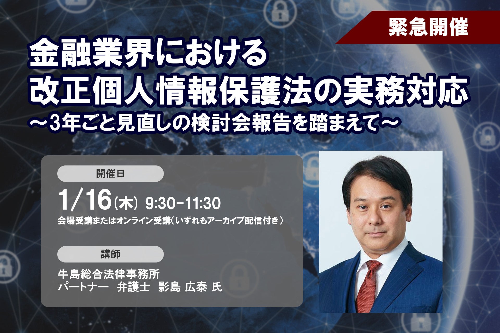 【緊急開催】「金融業界における改正個人情報保護法の実務対応」2025年1月16日開催 ❘ セミナーインフォ