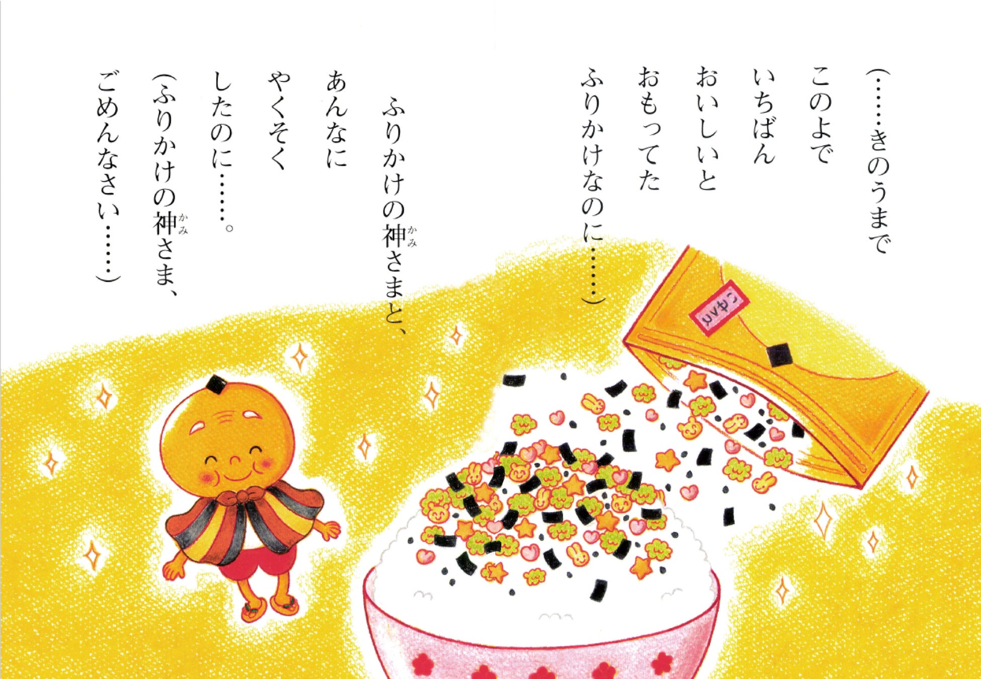 そんなさらの前に現れたのは、おかしな「ふりかけの神さま」でした。