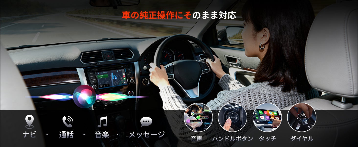 さらにハンドルボタン/タッチ/ダイヤルなど車の純正操作にも対応し、運転中の導線を崩しません。