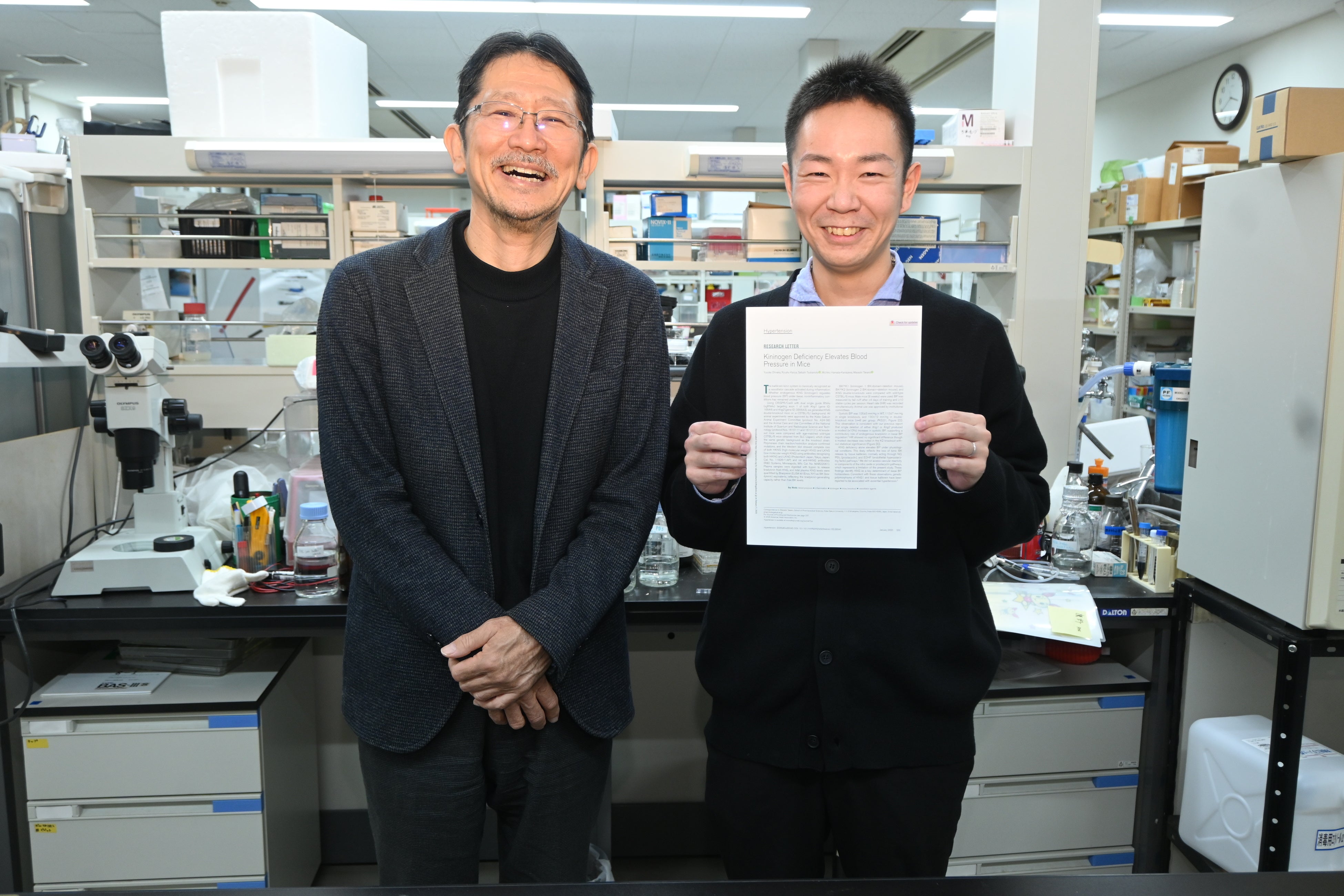 神戸学院大学薬学部・細胞分子生物学研究室の鷹野正興教授、大中佑介助手、量子科学技術研究開発機構(QST)生物資源管理課の塚本智史課長らの研究グループは、ペプチドの一種であるブラジキニンの前駆体であるキニノーゲン(Kininogen, KNG)が、生体に炎症のない通常の状態において血圧を低く保つ役割を果たしていることをマウスの実験で明らかにしました。世界で初めての発見として注目され、研究成果は、アメリカ心臓協会(AHA)が発行する心血管医学分野の主要国際誌「Hypertension」 に2025年12月17日付で掲載されました。(論文タイトル:Kininogen Deficiency Elevates Blood Pressure in Mice、DOI: 10.1161/HYPERTENSIONAHA.125.26043)