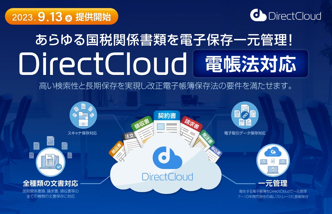 あらゆる国税関係書類を電子保存し一元管理!「DirectCloud 電子帳簿保存法対応」を提供開始
