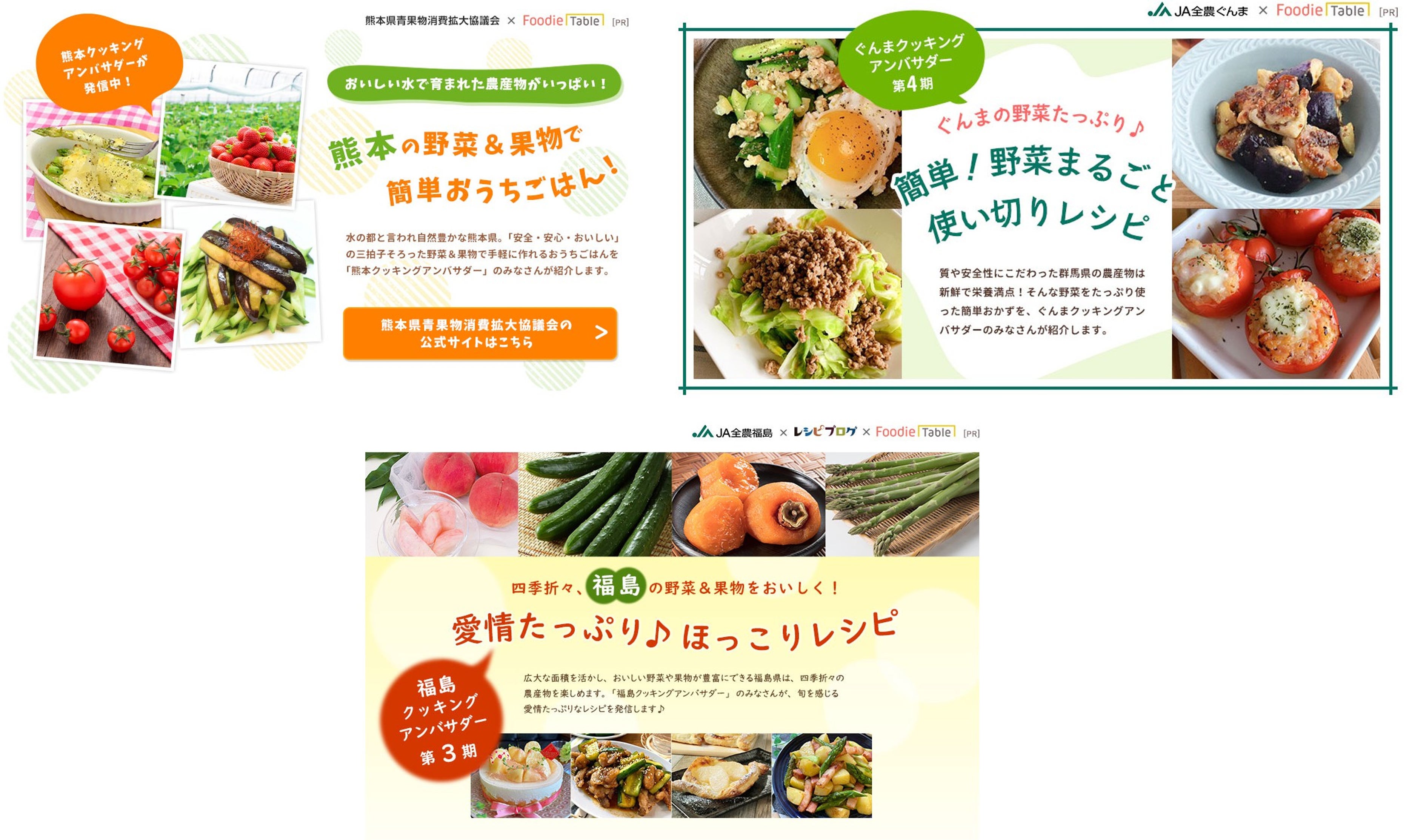 投稿されたレシピやレポートなどは各JA(農業協同組合)の公式サイトや店頭用レシピシートなどへの二次利用としても幅広く活用可能となっています。フーディストサービスのブログ、InstagramなどSNSを横断したネットワークを活かし、目的に応じたプラットフォームでコンテンツを発信することが可能なプロジェクトです。