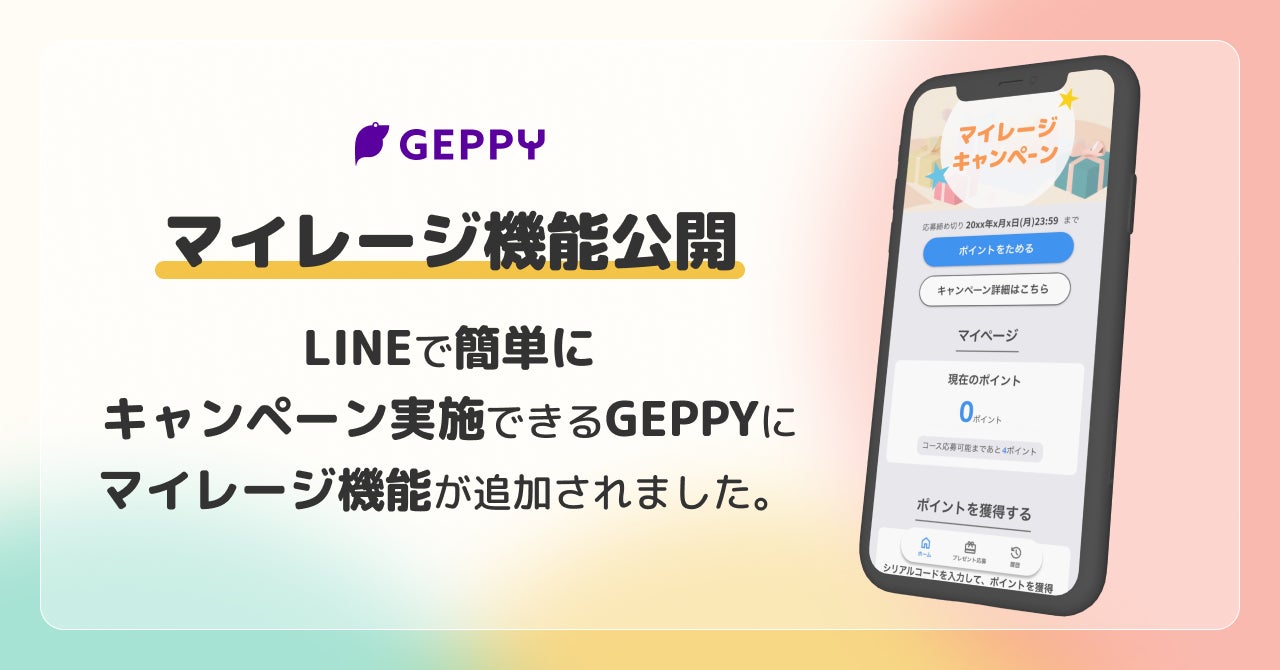 これにより、ポイントを貯めて応募する形式のLINEキャンペーンが手軽に開催できるようになります。マイレージ型キャンペーンは対象商品の複数回購入を前提としていることから顧客のリピート購入を促しやすい画期的な手法です。GEPPYはこの新しい機能を通じて、企業の売上アップと顧客ロイヤリティの向上を支援してまいります。