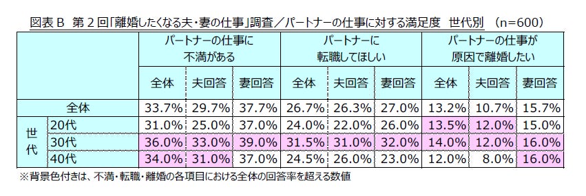 (1)3人に1人はパートナーの仕事に不満、30代が不満のピーク