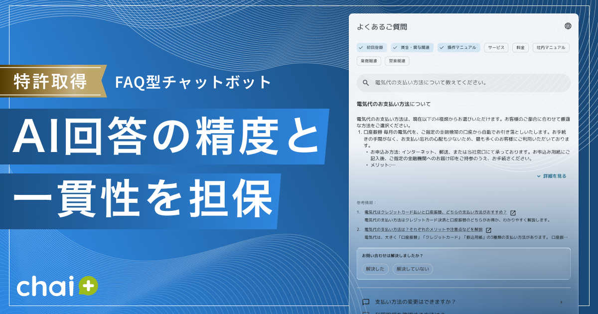 法人向けRAG型AIチャットボット「chai+」:特許技術を搭載したFAQ型チャットボット機能を提供開始