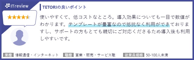 「ITreview」に寄せられたTETORI利用者のレビュー(一部抜粋)