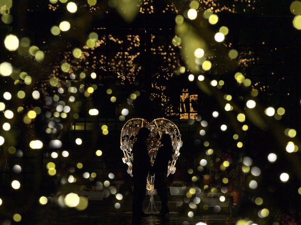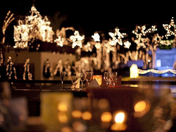 シンボル「マザーツリー」が輝く光のもとでブッフェを楽しめます。ガーデンプールに輝くイルミネーションとともに、美しく楽しいディナーをどうぞ。