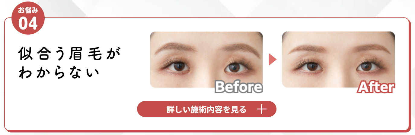 技術と再現性にこだわったプロのアイブロウリストが、骨格、毛質、なりたいイメージに合わせて一人ひとりに最も似合う眉をカットとメイクでデザインします。