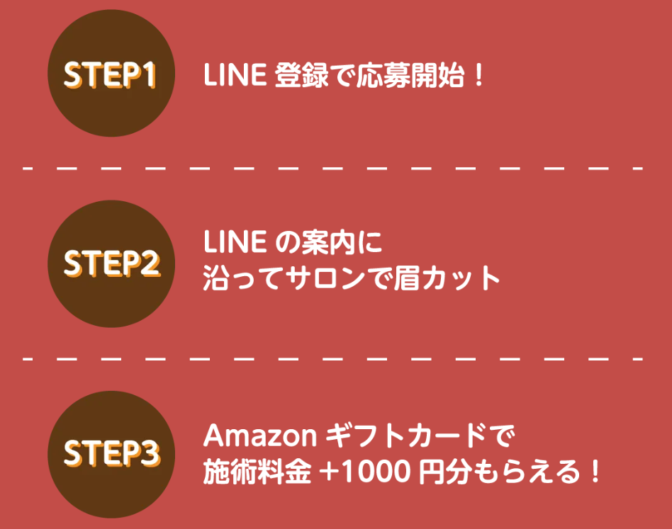 ※来店後にAmazonギフトカードで 眉カット代金+1,000円分をお支払いします。