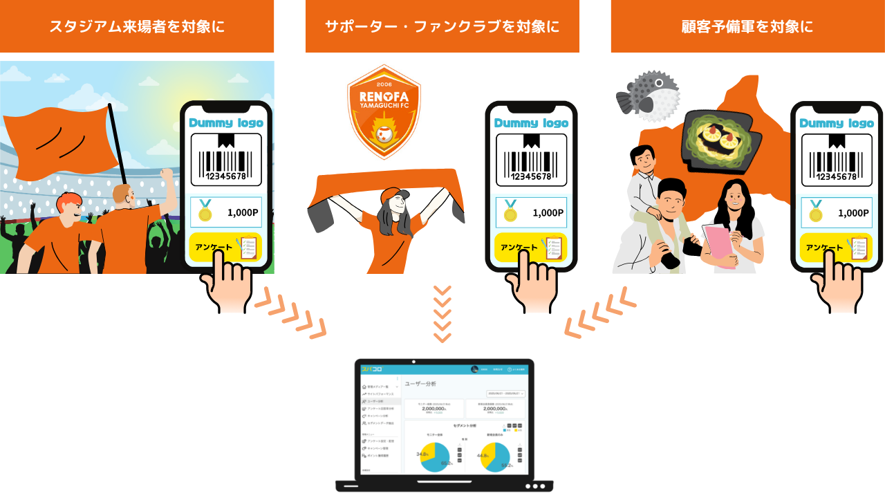 ■スパコロを活用したレノファ山口FCでのアンケートデータ収集イメージ