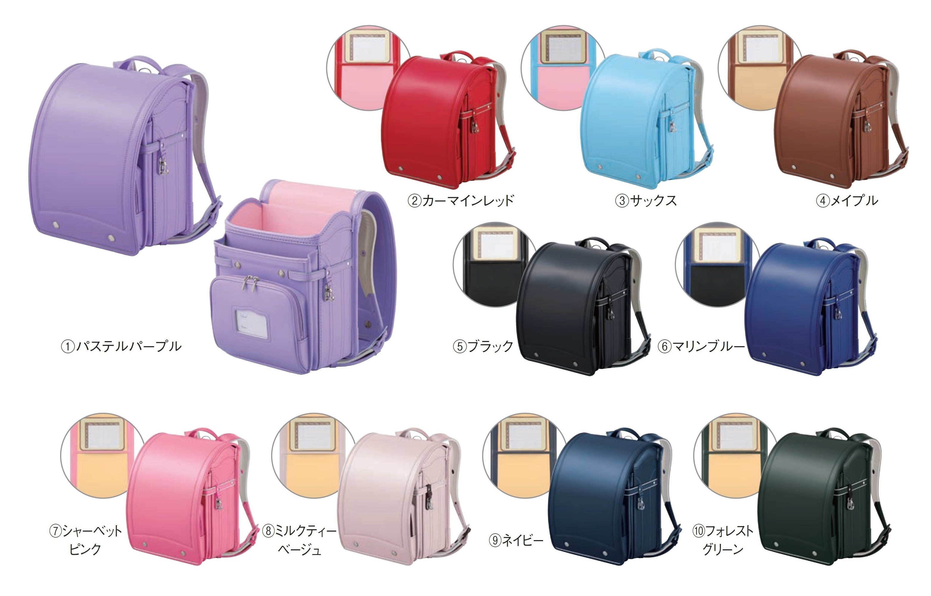 | カラー展開 | 10色(①パステルパープル、②カーマインレッド、③サックス、④メイプル、⑤ブラック、⑥マリンブルー、⑦シャーベットピンク、⑧ミルクティーベージュ、⑨ネイビー、⑩フォレストグリーン) |