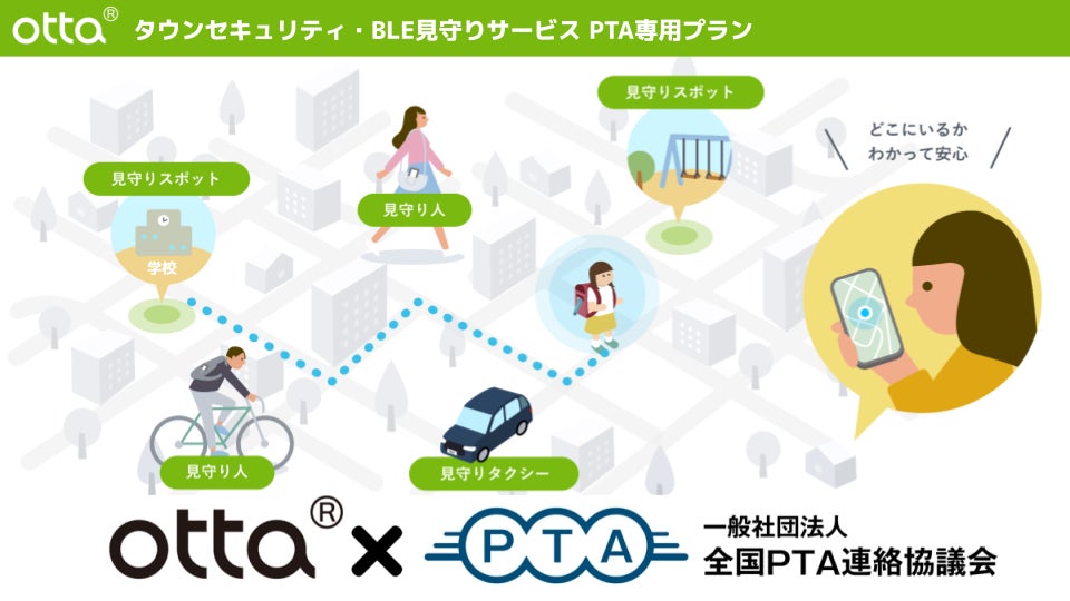 株式会社otta(本社:福岡県福岡市、代表取締役社長:山本文和、以下「otta」)と、一般社団法人全国PTA連絡協議会(東京都北区、代表理事:長谷川 浩章、以下「全国PTA連絡協議会」 )は、ottaが提供するタウンセキュリティ・BLE見守りサービスを活用し、子どもたちの公平かつ効果的な見守り環境の実現を目的にPTAによる見守りサービスの導入を支援する取り組みを共同で推進することを合意しました。