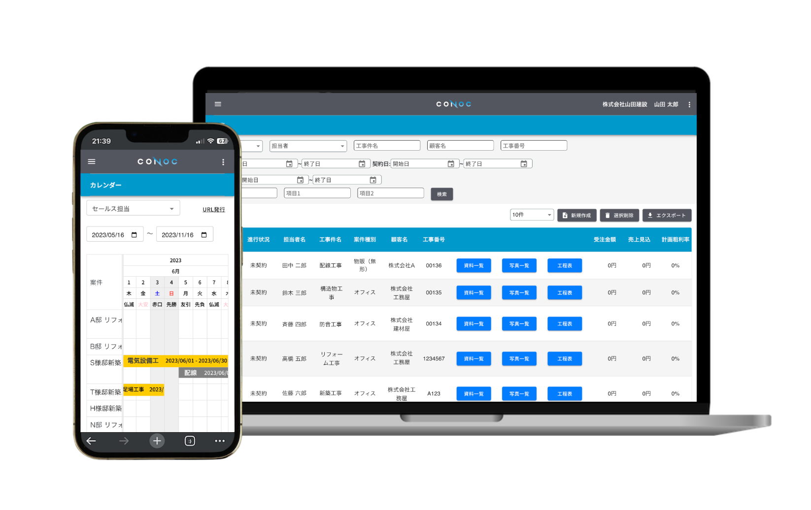 CONOCは、建設業における業務効率化や新たな価値創出に取り組んでおり、2021年にリリースしたCONOC業務管理クラウドは300社以上のお客様に導入・ご活用いただいております。