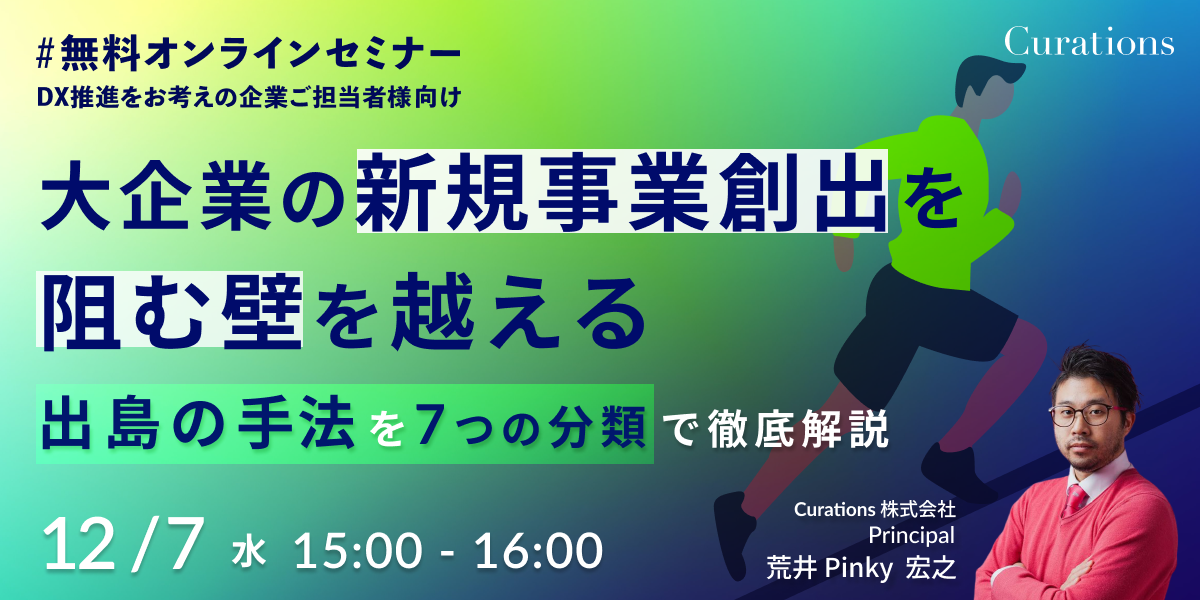 【12月7日(水)15:00〜 無料オンラインセミナー】大企業の新規事業創出を阻む壁を越える〜出島の手法を7つの分類で徹底解説〜