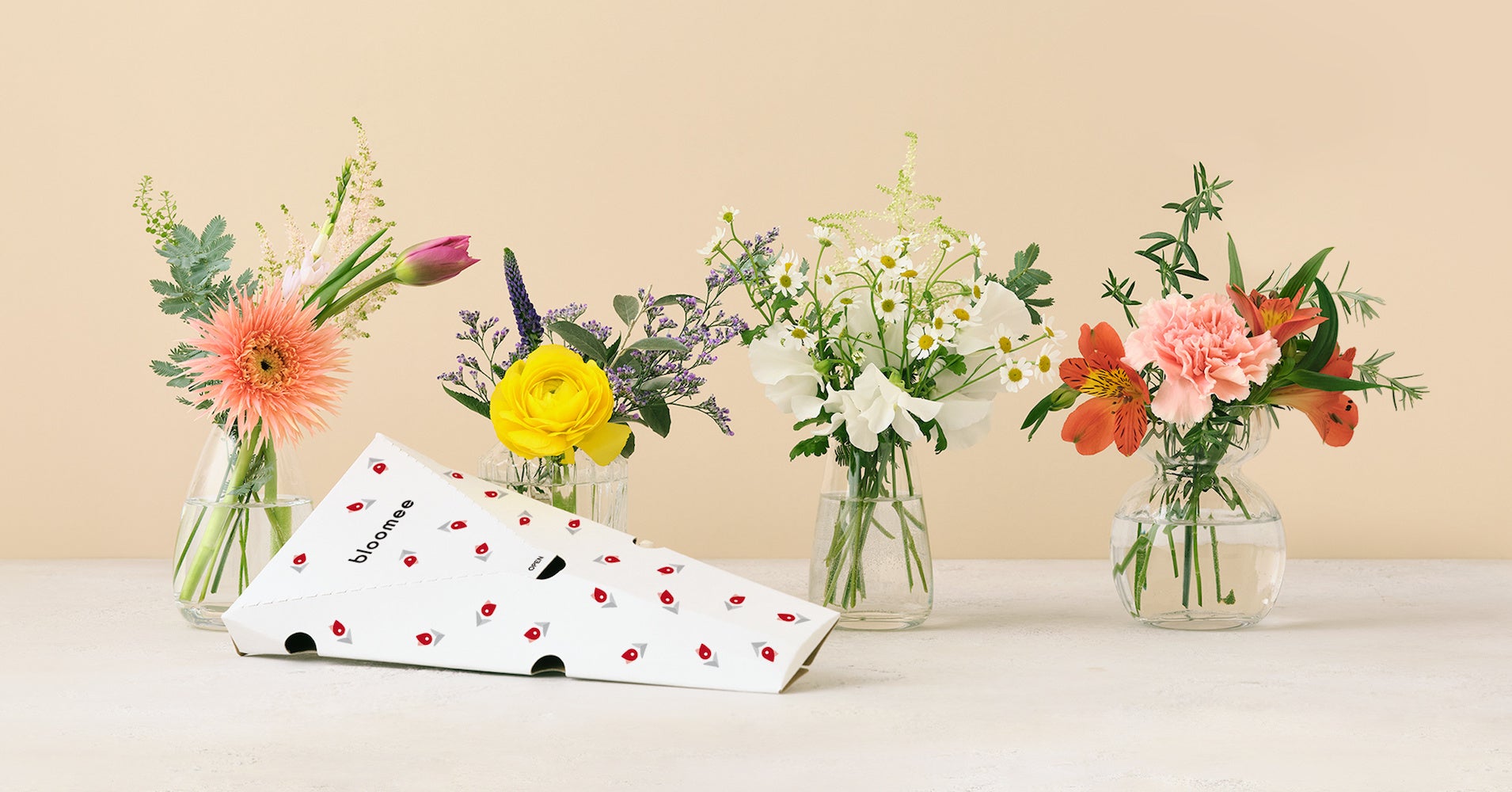 「ブルーミー」は10万世帯以上が利用する、日本初・最大級の花のサブスクリプションサービスです。200店舗以上の提携生花店と自社拠点から、週変わりで季節の花をポストにお届けしています。プランは550円・880円・1,980円の3種類(送料別)